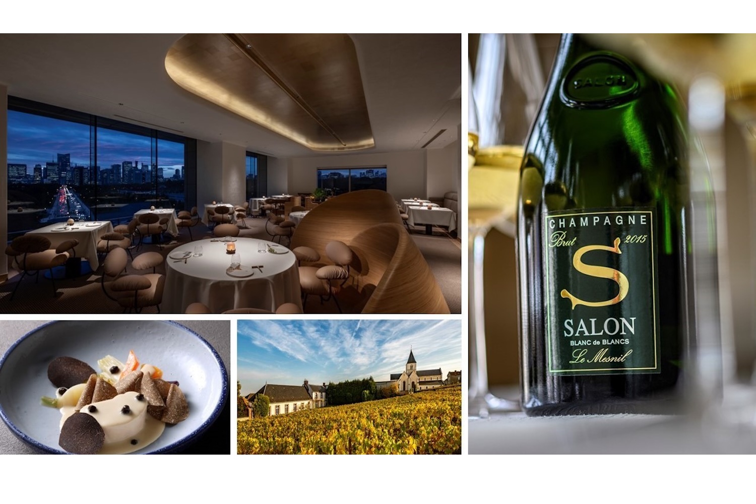 今回のディナーでは、円熟の極みにある「サロン 1997」と、ポテンシャルに満ちた「サロン 2015」の2種に加え、姉妹メゾン「DELAMOTTE(ドゥラモット)」から個性の異なる3種のシャンパーニュが登場。対照的な個性をもつ両メゾンの世界を一度に味わえる贅沢な構成となっている。