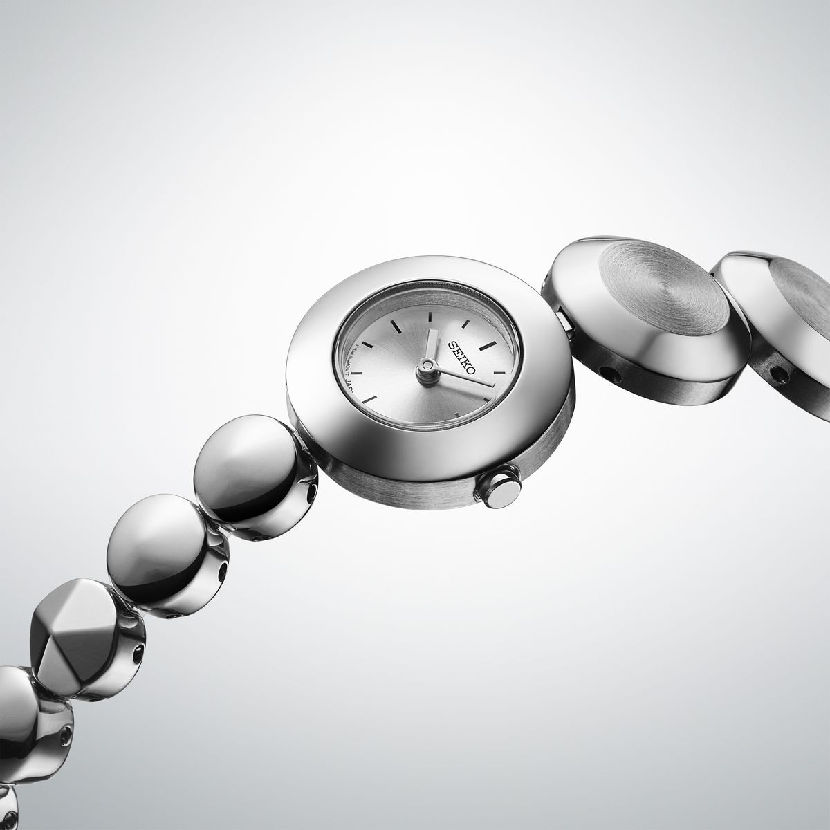 ファーストコレクションは、1984年に婦人用として発売されたオリジナルモデルを、その枠を超えた新しい腕時計として生まれ変わらせたもの。「ブレスレットウオッチ」として親しまれた小ぶりなサイズ感と、アクセサリーのように楽しめる、ゆったりとした着け心地を受け継ぎながら、現代の感性に寄り添ったデザインに仕上がっている。