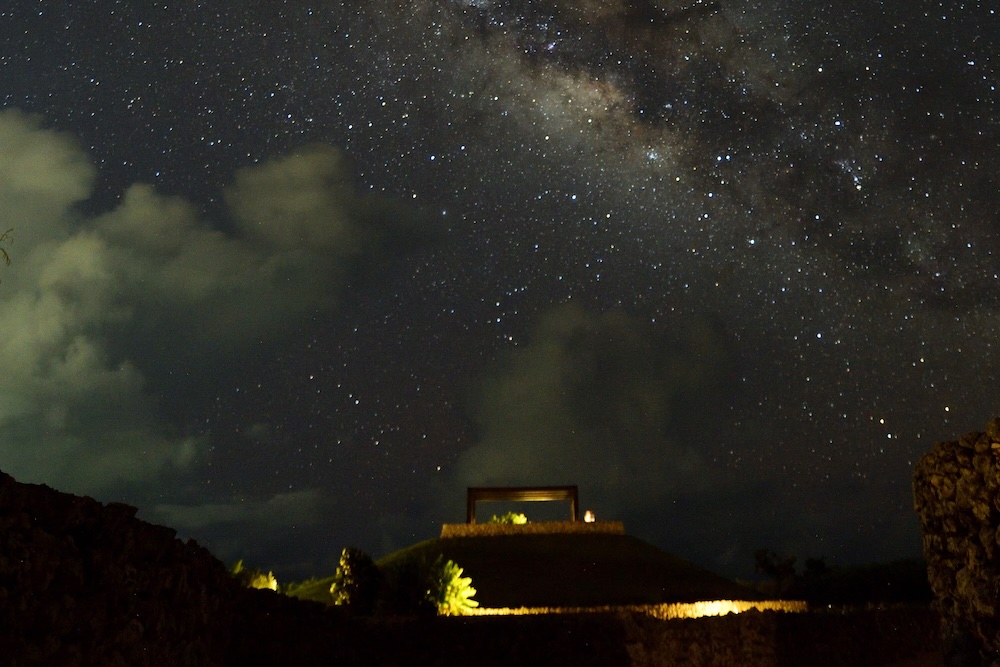 料理を味わうのは、大きな窓から島の自然を望む開放的なダイニング。夕暮れには空が赤く染まり、夜には「星空保護区」にも認定された八重山の星空が広がる。