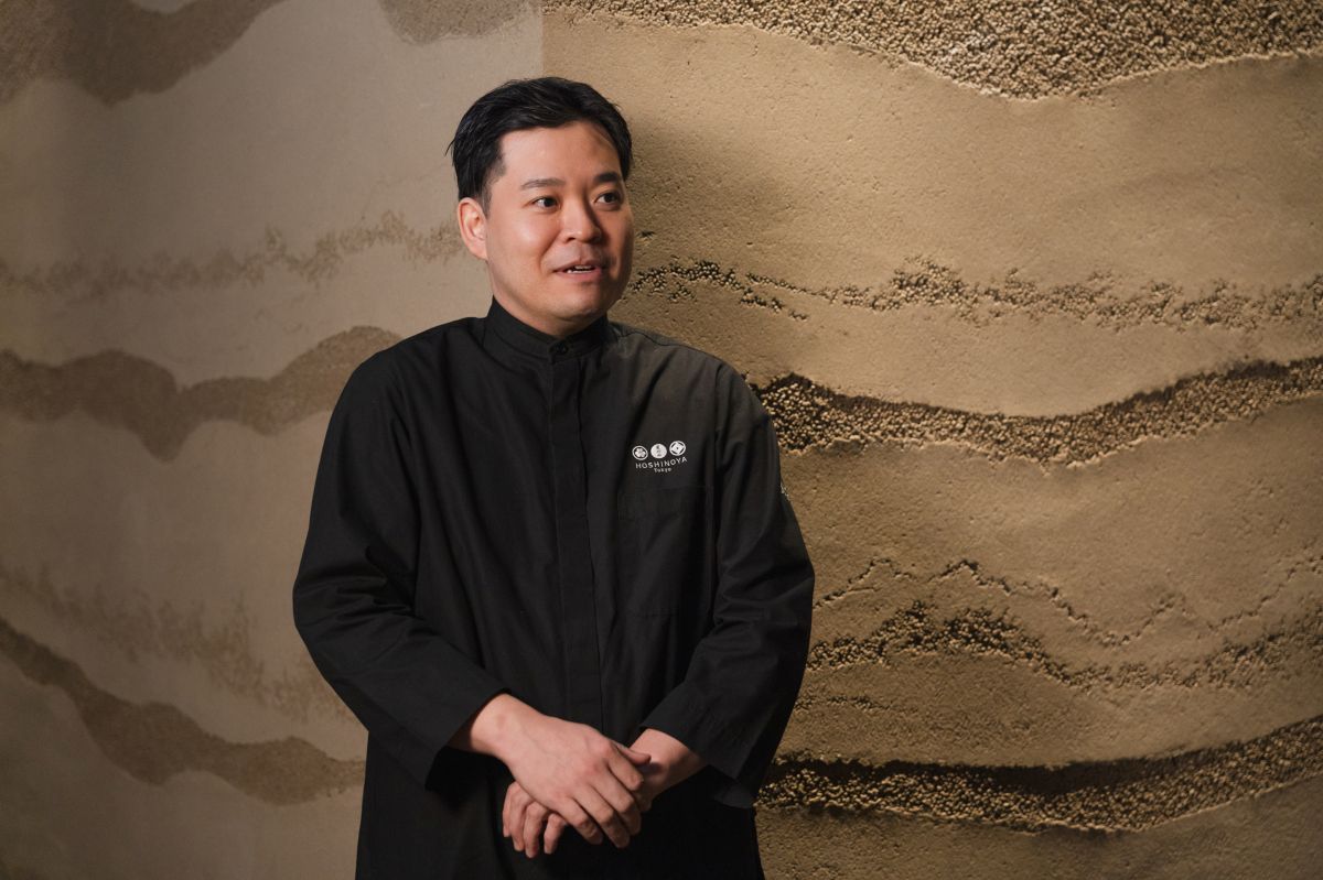 神戸北野ホテルやレストランオマージュ、ピエールガニェールなどでフランス料理の研鑽を積み、2023年5月より星のや東京総料理長に就任した岡 亮佑氏。