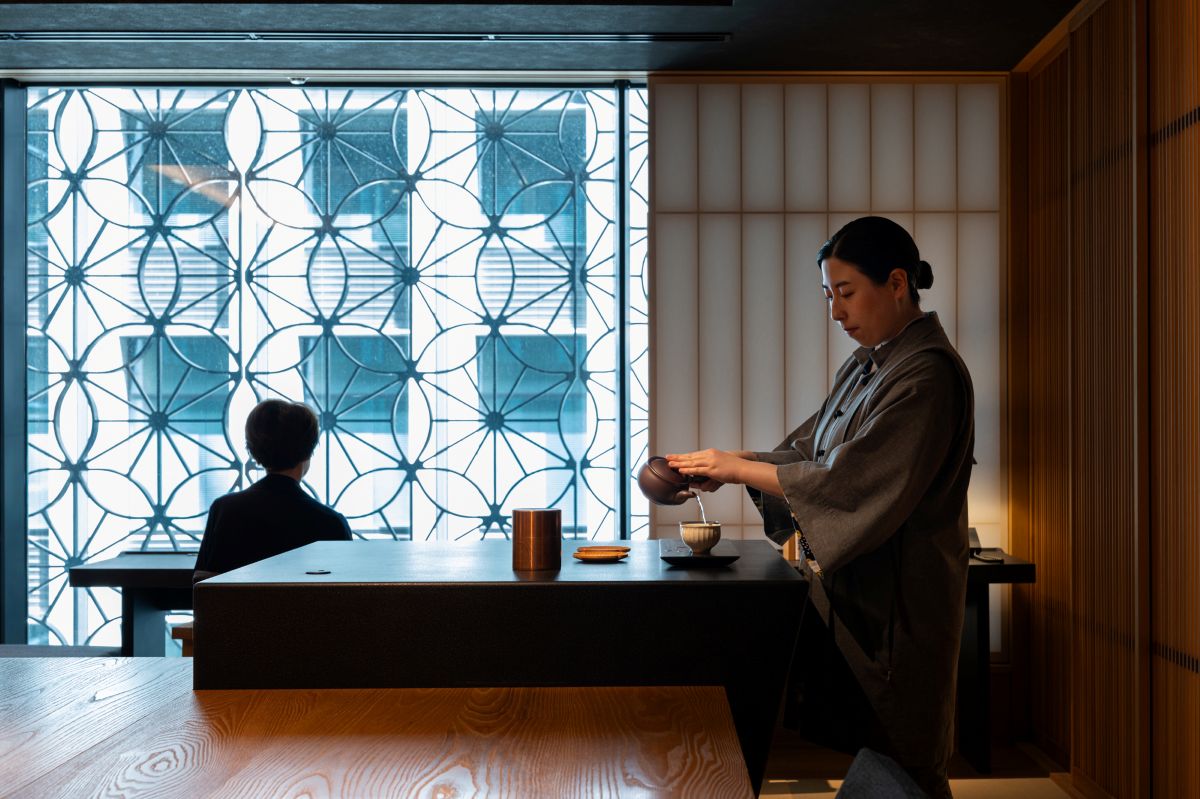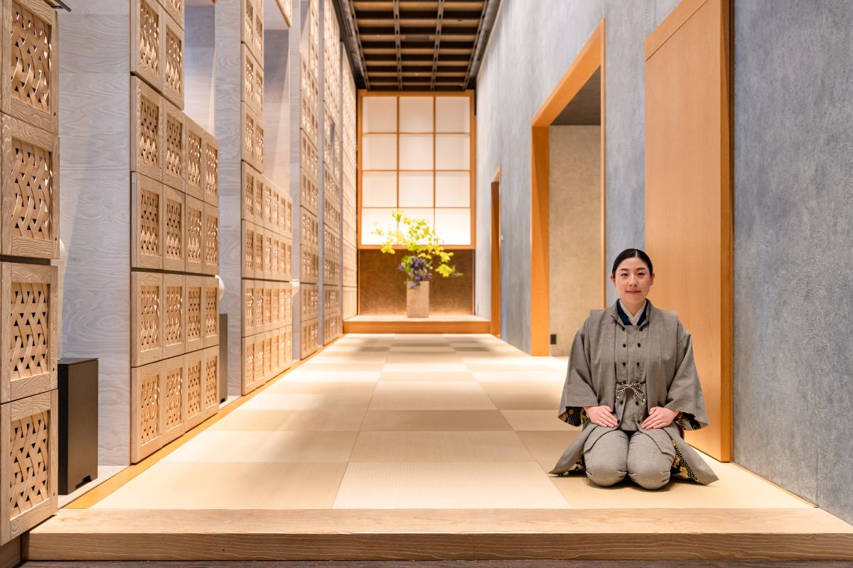 そしてここが近隣のラグジュアリーホテルと大きく違う点と感じるのが、各階に設けられた「お茶の間ラウンジ」の存在。自宅の茶の間のように、宿泊者は靴を脱ぎ、裸足で美味しいお茶やお茶菓子をいただきながらくつろぐことができます。この開放感は旅館ならではの心地よさ。さらに時間によっては、“お茶の間ラウンジ”に旅館の女将さんのような立場のスタッフがいて、旅の予定など、たわいのない話をすることもできます。まるで自宅の茶の間にいるような時間はまさに旅館の真髄といえるでしょう。