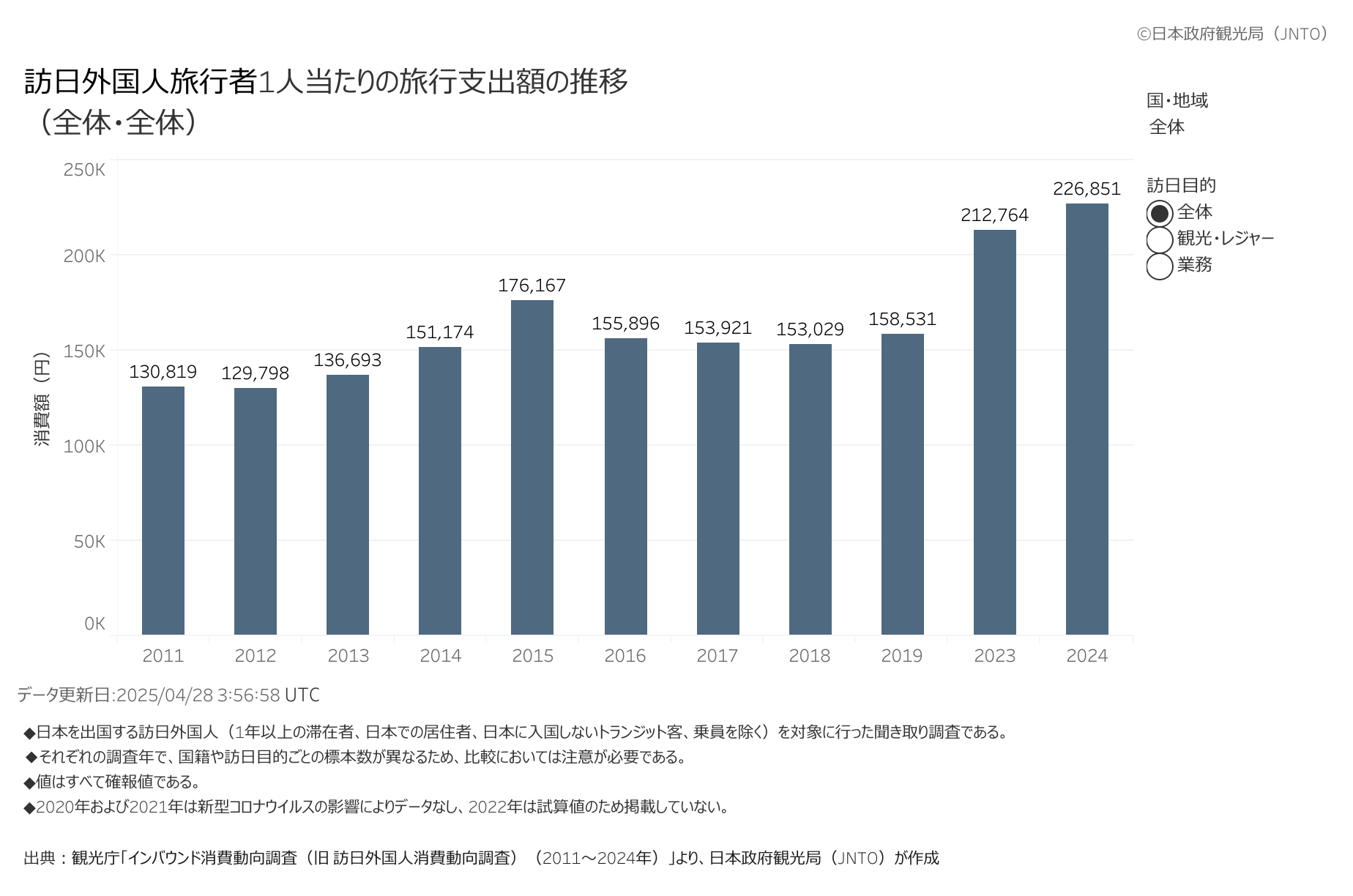 2025年のデータですと、1人当たりの消費額は23万円ぐらいです。これをさらに上げていくためには、日本でたくさんのお金を消費して下さる特に「欧米豪」と呼んでいますが、ヨーロッパ、アメリカ、オーストラリア、こうした国々の旅行者に訴求するような取り組みをさらに進めていきたいのです。