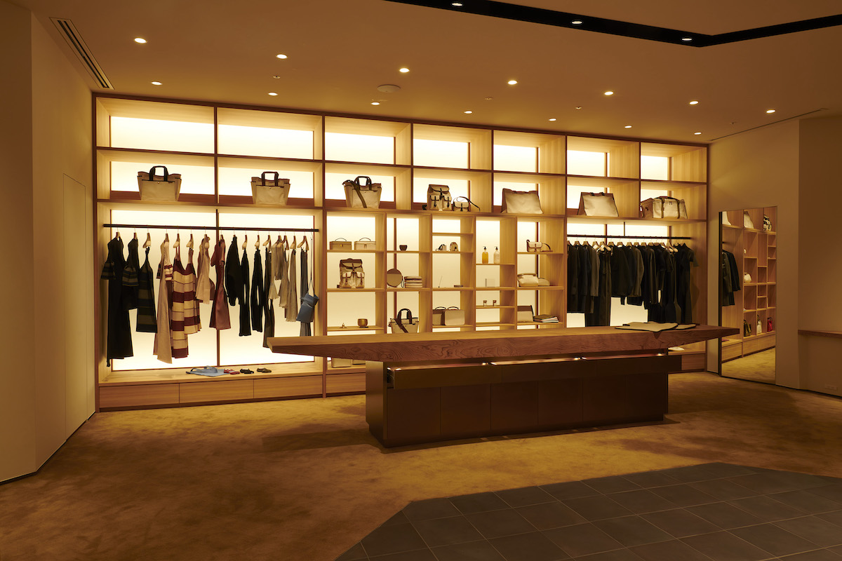 空間デザインを手掛けたのは、杉本博司氏と榊田倫之氏が主宰する「新素材研究所」。フロアの中心には時計の長針と短針を模した回転什器を配置し、フロアを回遊できるように木格子に囲われた回廊になっている。