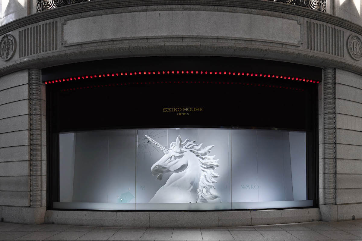 1952年に誕生したウインドウディスプレイは、当時より銀座を訪れた人々の目を奪っている。2025年12月26日〜2026年1月28日のディスプレイ『角』。