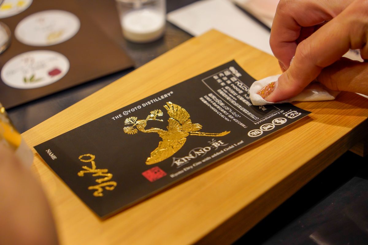 「季の美 House」の近くにある「堀金箔粉」の金箔を使って、200mlの「季の美」のラベルに金箔を貼る「金の美」ワークショップの他、「季の美」を使った水割りなどをいただくことができる内容だ。もちろん完成したマイ“金の美”は持って帰ることができる、思い出の体験ができるはずだ。