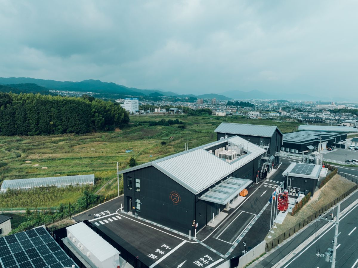 京都蒸溜所 代表取締役の長井大幸さんは「既存の蒸溜所の生産量に限界を感じていたことから、新蒸溜所の候補地をかなり探し回り、この亀岡市にたどり着きました。京都市内からは車で20分ほどという利便性の高さに加え、亀岡市長はサステナブル対策に積極的な人。当社の考え方に近いことが大きな理由の1つです。蒸溜所で使用される電力は100%風力、水力、太陽光、そして地熱といった再生可能エネルギーです」。